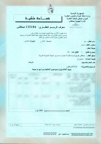 A vendre lotissement de 500 m2 ouvert côté est / sud, approuvé par commune de Gremda, titre bleu, tout les papiers en règle. (Avec autorisation de bâtir datée le 26/05/2025). Emplacement calme et cartier chic. Sérieux, envoyez-moi un message.